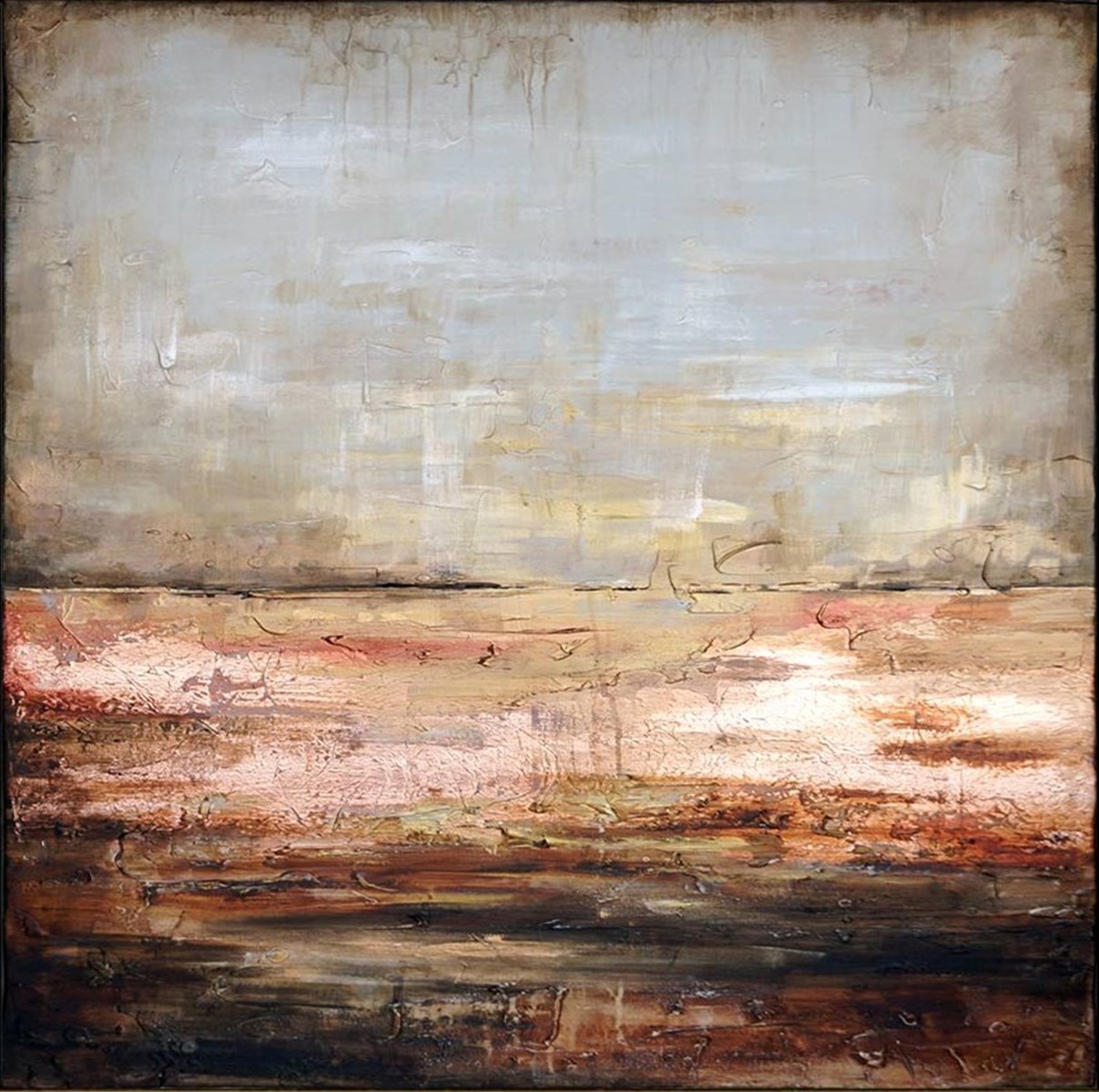 Large Original Burnt Orange Abstract Seascape Painting, Contemporary Square Format Palette Knife Textured Artwork, GOLDEN SUN PATH by artist Bilyana Stoyanova